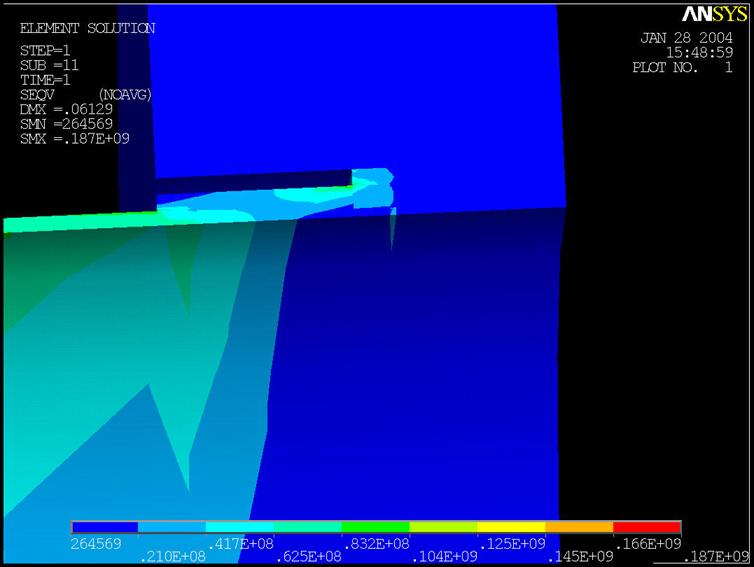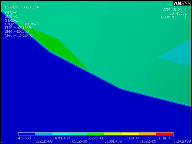 rozkład naprężeń uzyskałem stosując wycięcie o głębokości 120mm. Naprężenie