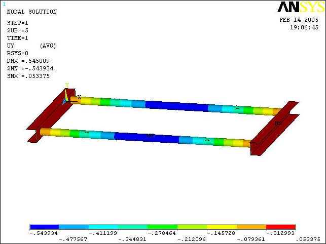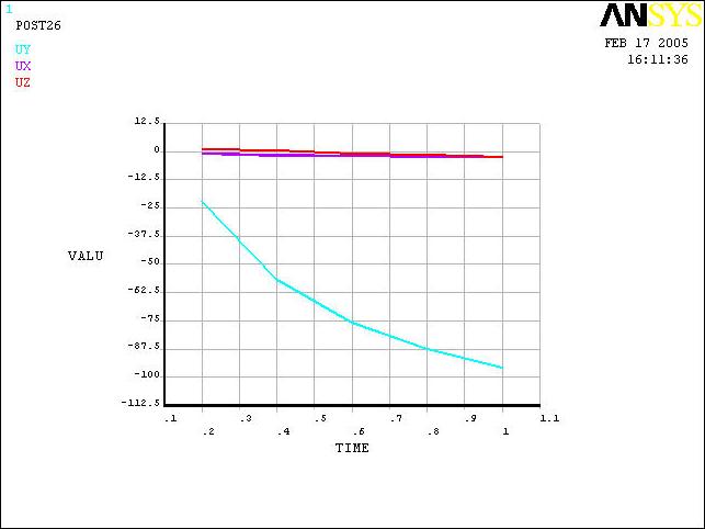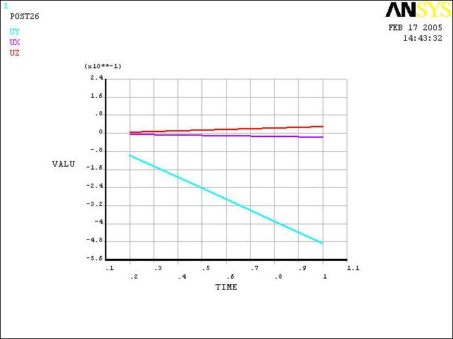 Dopiero po znacznym zwiększeniu obciążenia wykres przemieszczeń w kierunku Y ulega załamaniu
