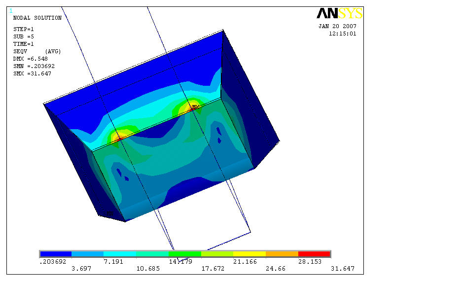 - zastosowanie zmiany spowodowało spadek naprężeń maksymalnych z 71.3 MPa do 31.647 MPa - (czyli o prawie 55%)
